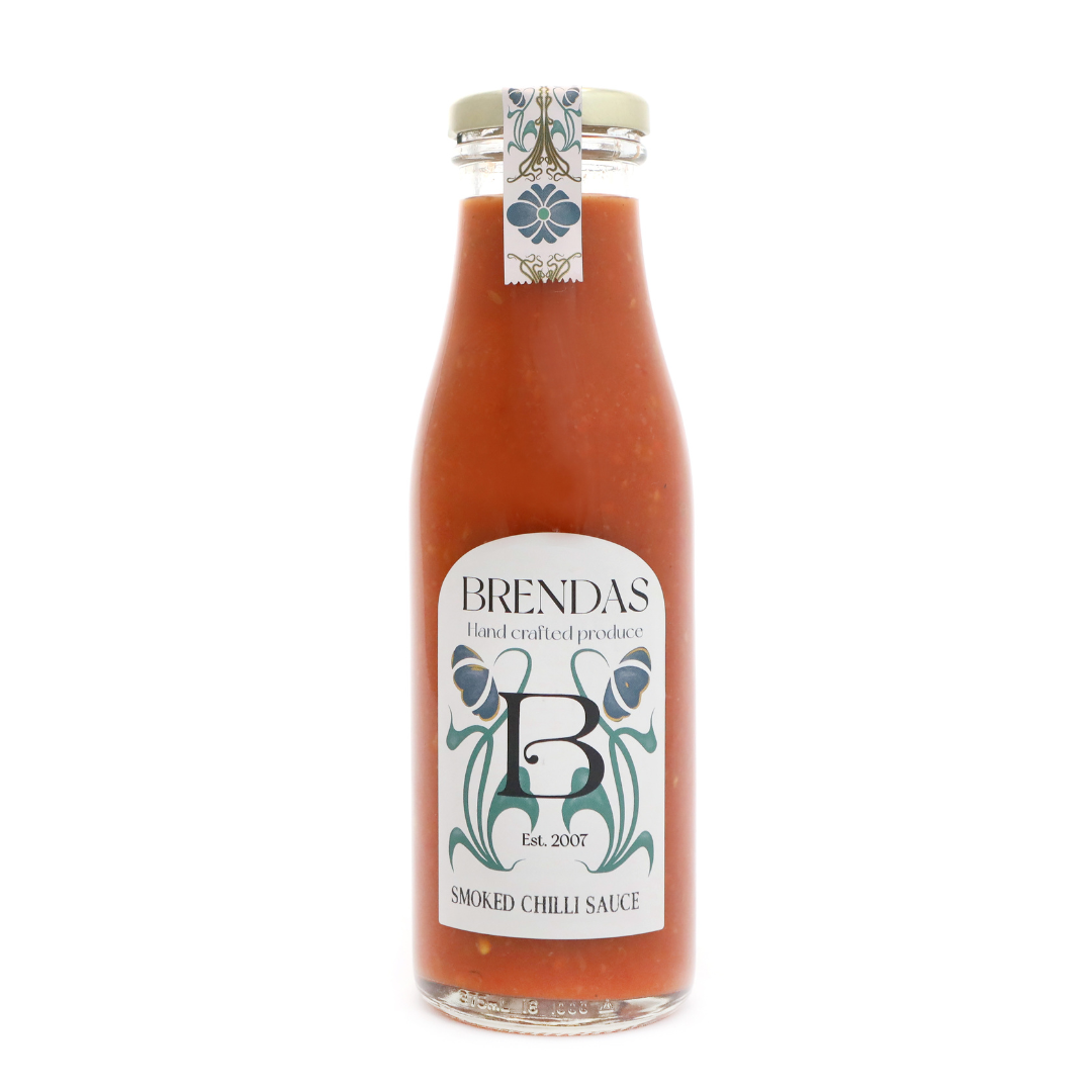 Tomato, red pepper, sugar, jalapeno syrup, jalapeno, garlic, salt, ginger, smoked sauce, chili, paprika, xanthan gum, coriander, cumin and smoked essence.